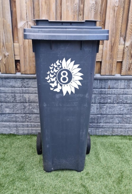 Geef je container een frisse en vrolijke uitstraling met deze prachtige sticker van een bloem met sierlijke vlinders!