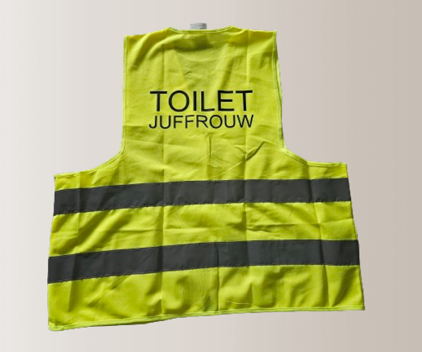 Ik stuur een voorbeeld van de tekst. Als je hiermee akkoord gaat wordt de tekst op het hesje gedrukt.