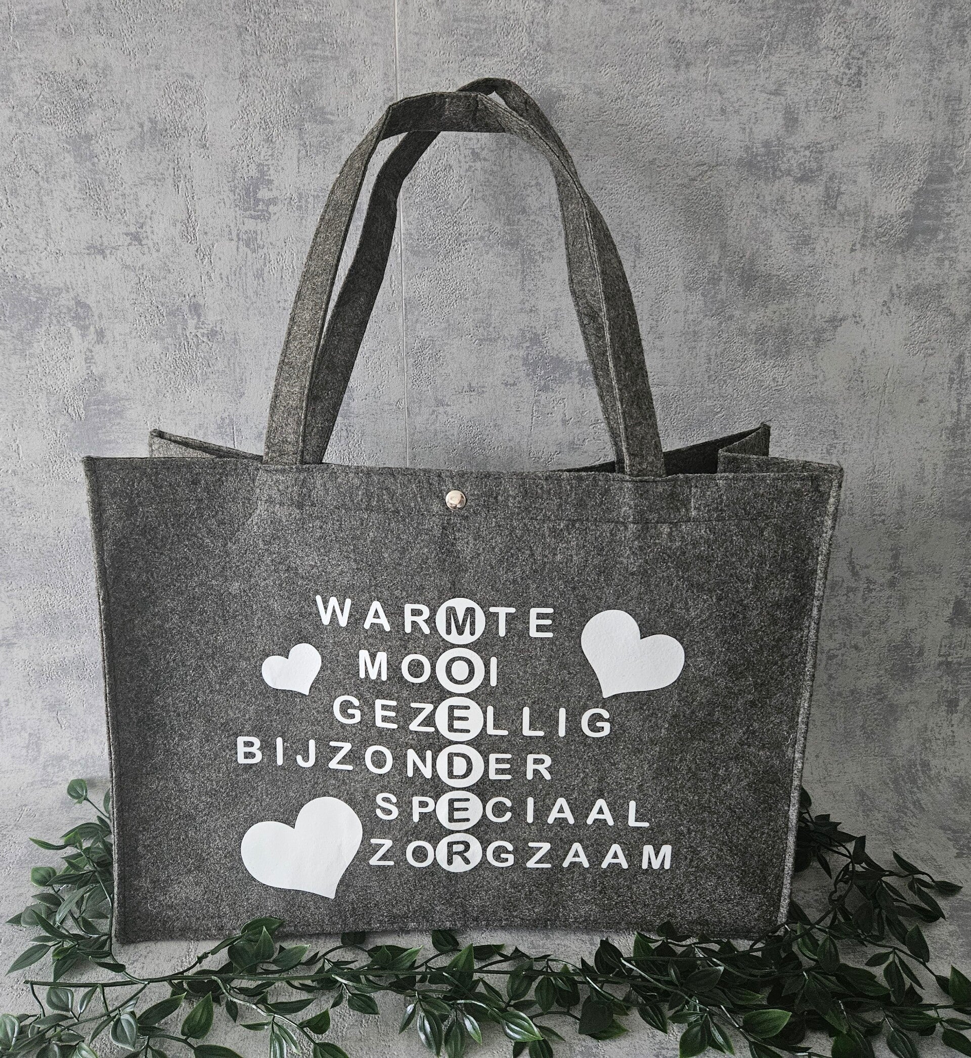 Soms zegt één woord genoeg. Deze stijlvolle vilten tas met de opdruk “MOEDER” is een ode aan alle vrouwen die met liefde, kracht en toewijding klaarstaan voor anderen. Of ze nu boodschappen doet, op pad is met de kinderen of gewoon een momentje voor zichzelf heeft – deze tas past perfect bij haar.