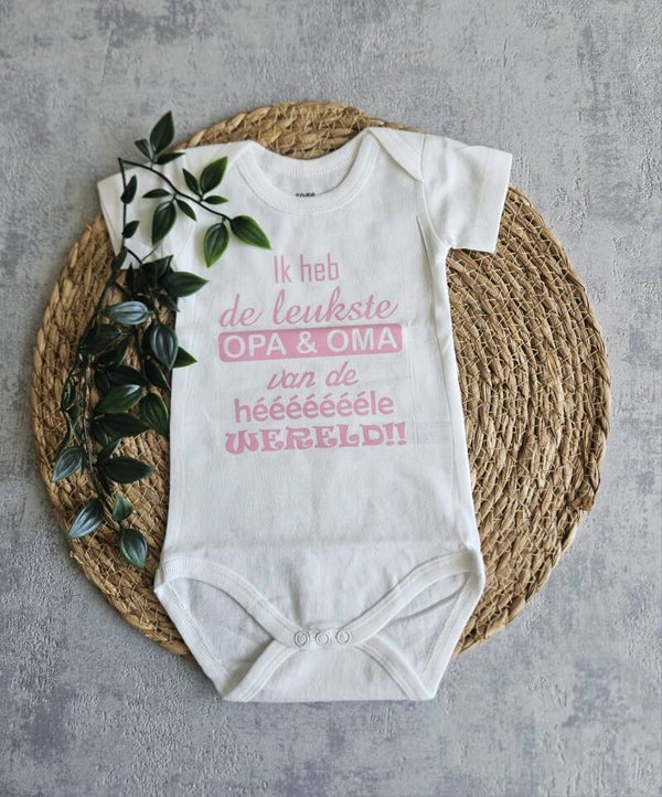 Met de tekst "Ik heb de leukste opa en oma van de hele wereld" steelt jouw kleintje ieders hart én laat meteen zien wie de favorieten zijn.