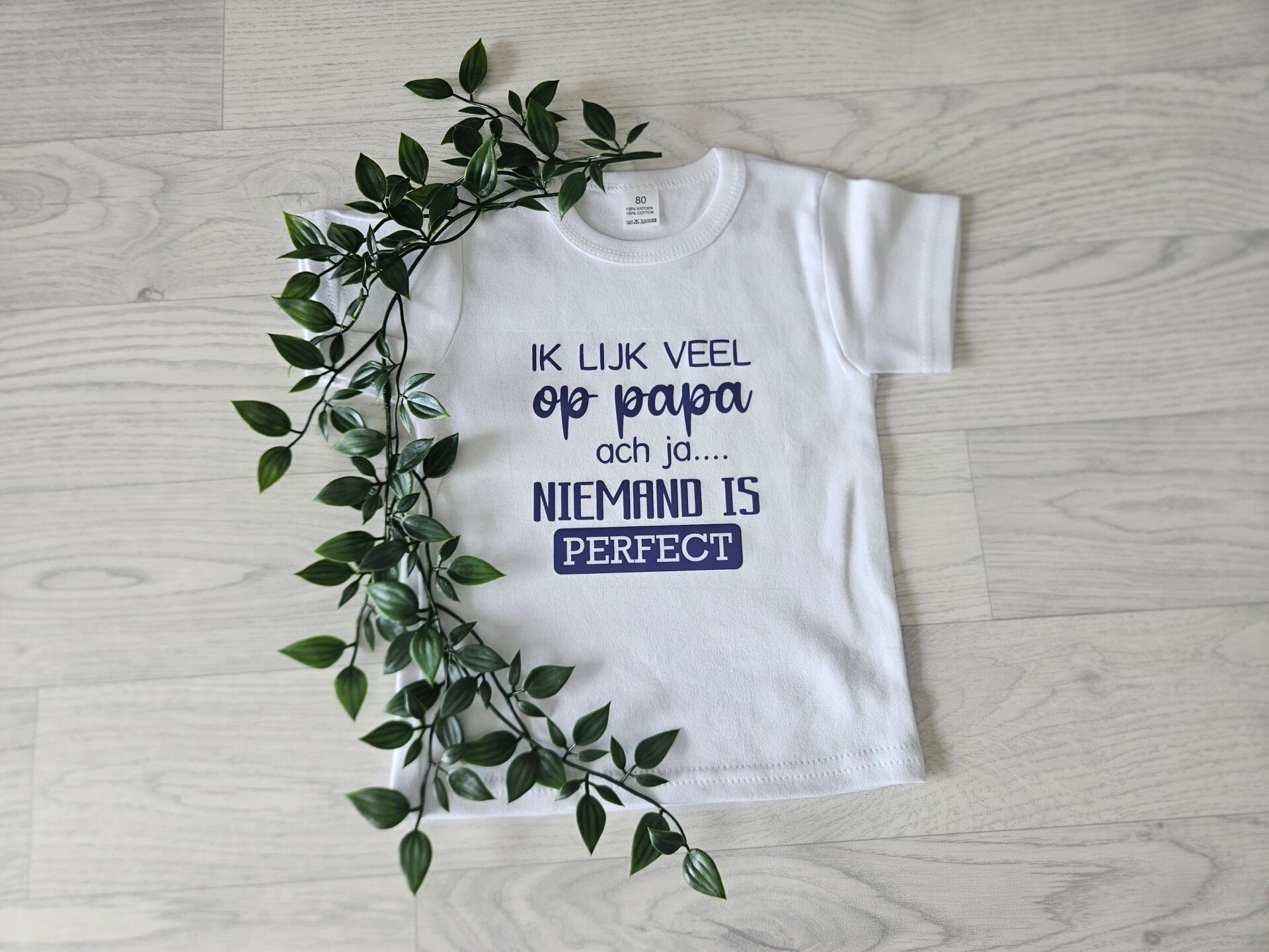steelt jouw kind gegarandeerd de show. Een t-shirt vol zelfspot en liefde voor papa – en natuurlijk met een knipoog naar die ‘kleine’ imperfecties 😜