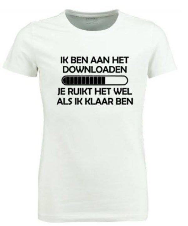 Deze grappige strijkapplicatie met de tekst "Ik ben aan het downloaden, ruik je dat niet?" is perfect voor op een rompertje of slabbetje. Gegarandeerd een glimlach!